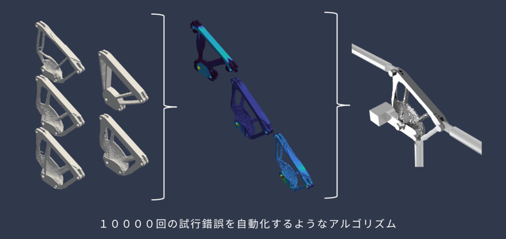 設計プロセスにおいて、人の直感だけで複数の設計要件を同時に考慮することは非常に困難です。Φ-Designerには、3Dモデルに対応した最新のAI技術ベースの計算アルゴリズムが搭載されており、最大1万回にも及ぶ膨大な設計・試作評価シミュレーションを自動で実行します。これにより、設計者の迅速な開発と的確な意思決定を強力に支援します。