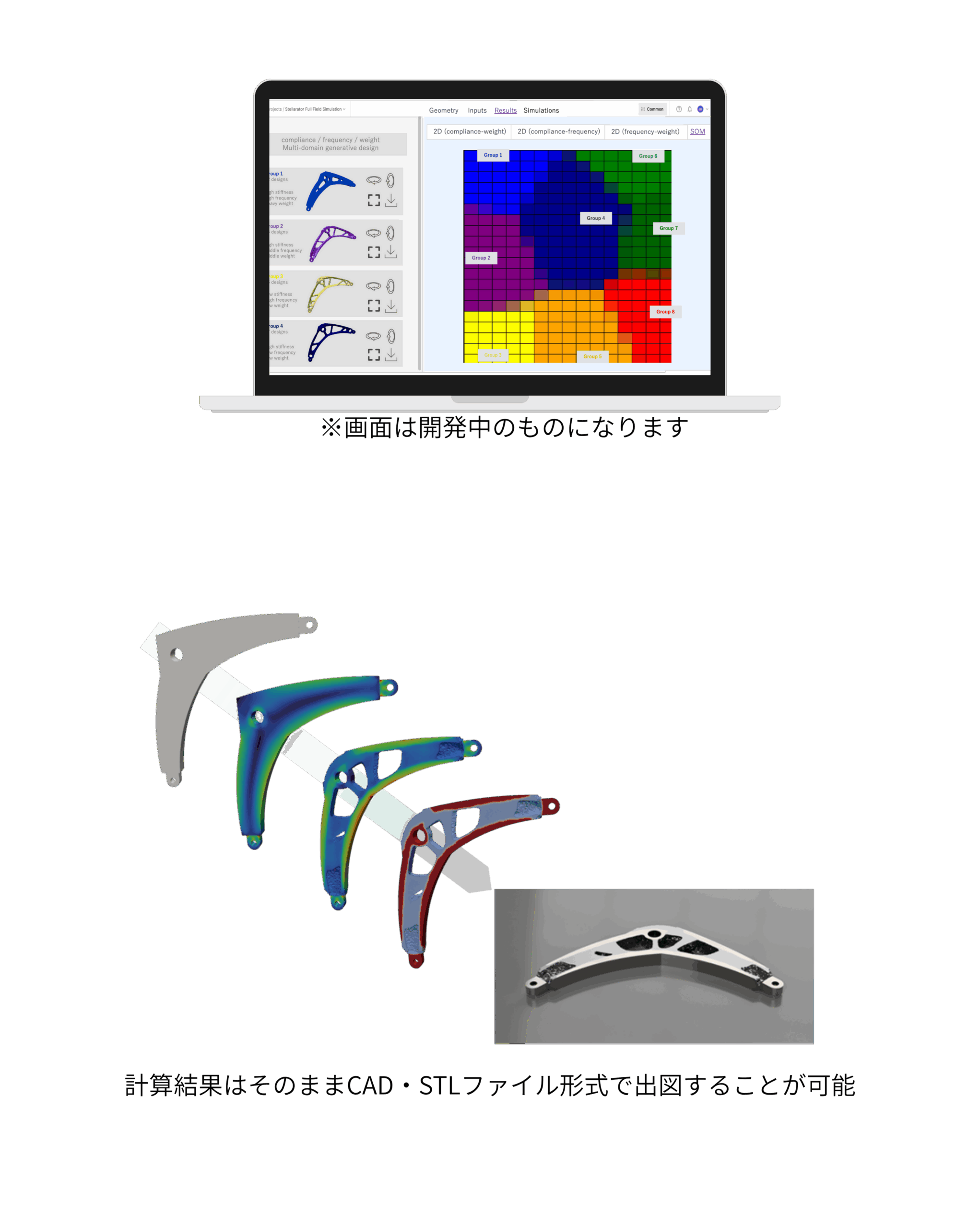 Φ-Designerは、トポロジー最適化をはじめとする従来の最適設計では同時に考慮することが難しかった、製造性と性能要件のトレードオフ(相反する関係)を可視化できる、設計者向けのAI設計アシストソフトウェアです。
